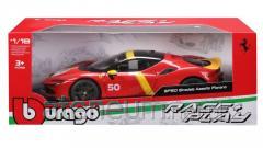 Ferrari 296 GTB Assetto Fiorano oryginalny produkt marki Bburago, oficjalny, licencjonowany wzór pojazdu, metalowy model z plastikowymi elementami, perfekcyjne odwzorowanie szczegółów. Ruchome elementy: maska, drzwi, bagażnik. Wymiary opakowania: długość 16,5cm, szerokość 33cm, wysokość 13cm. Długość pojazdu ok. 26cm. Ferrari 296 GTB Assetto Fiorano to wersja skierowana dla entuzjastów jazdy sportowej, oferująca zoptymalizowane osiągi i wyjątkowe cechy. Została stworzona z myślą o torowych doświadczeniach, a każdy jej element jest poddany precyzyjnemu tuningu. Pod maską Assetto Fiorano kryje się zaawansowany układ napędowy, który łączy mocny silnik V6 biturbo z elektrycznym, dostarczając imponującą łączną moc 830 KM. Ferrari 296 GTB Assetto Fiorano to nie tylko samochód sportowy, ale prawdziwe dzieło sztuki inżynieryjnej, które podkreśla pasję Ferrari do doskonałości i wyścigowej tradycji. To idealny wybór dla tych, którzy pragną przeżyć intensywne doświadczenia na torze, jednocześnie czerpiąc radość z luksusowego i precyzyjnie wykonanego pojazdu.