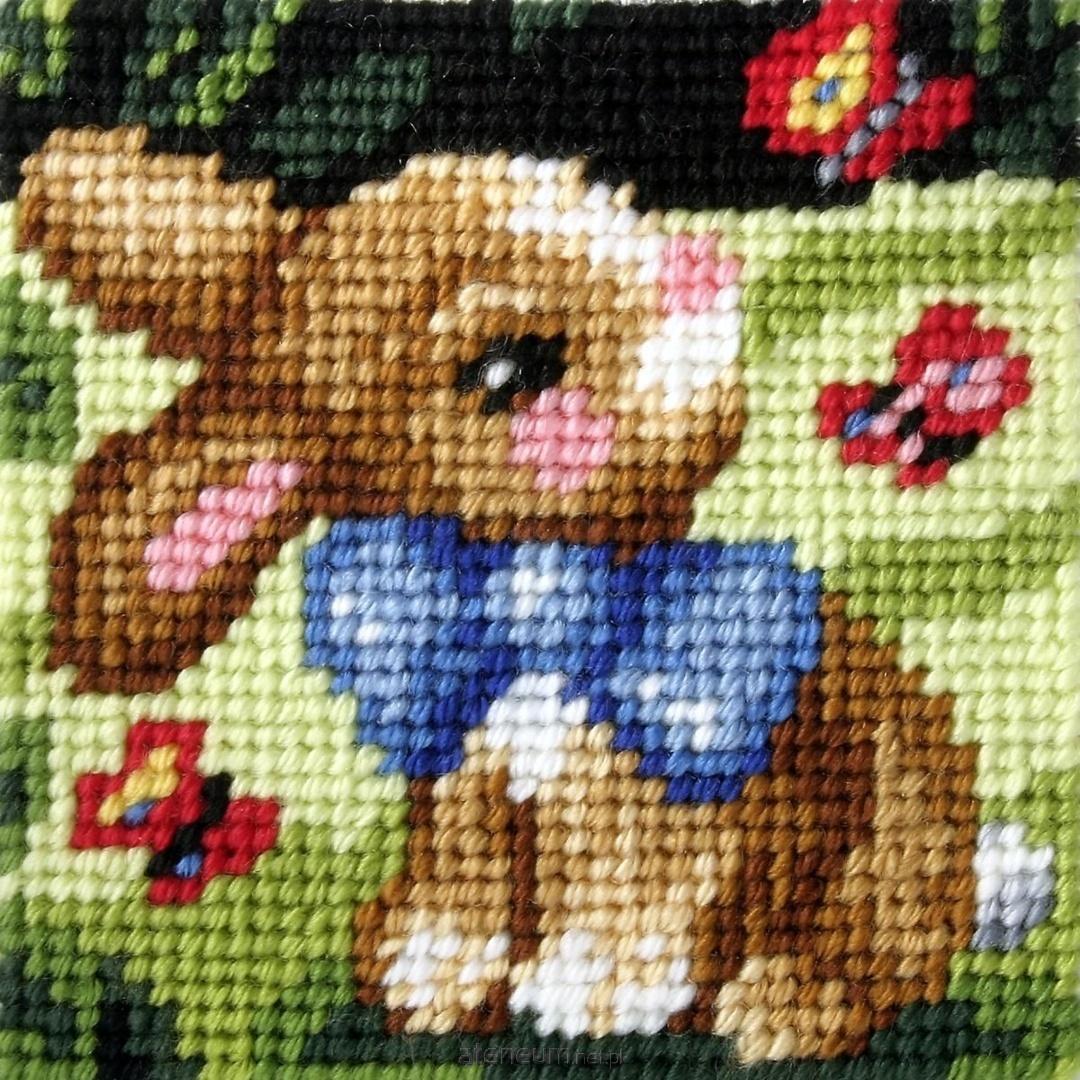 Zestaw do haftu zawiera tkaninę z nadrukiem, mulinę, igłę i instrukcję. Świetny wybór dla początkujących i młodych twórców. Wymiar haftu: 16.5 x 16.5 cm.