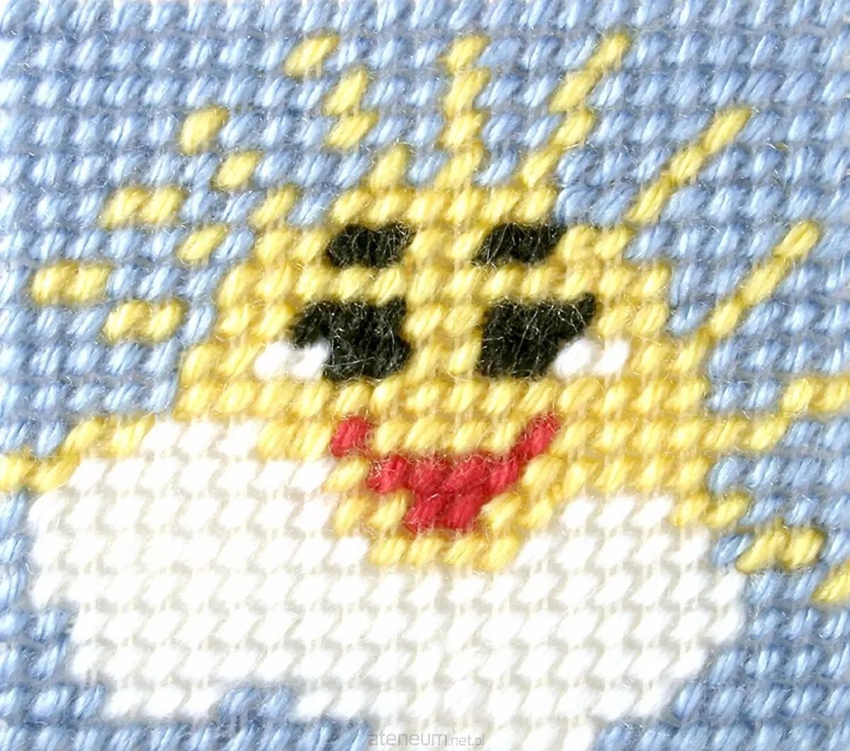 Zestaw do haftu z włóczką idealny dla dzieci i początkujących! Tkanina z nadrukiem, igła, włóczka i instrukcja w zestawie Wymiar haftu: 11 x 13 cm.