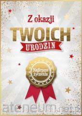 Kartka jest bogato i różnorodnie zdobiona (zależnie od wzoru: metaliczna folia, lakier perłowy,