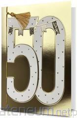 Kartka jest bogato i różnorodnie zdobiona (zależnie od wzoru: metaliczna folia, lakier perłowy,