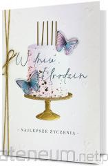 Kartka jest bogato i różnorodnie zdobiona (zależnie od wzoru: metaliczna folia, lakier perłowy,