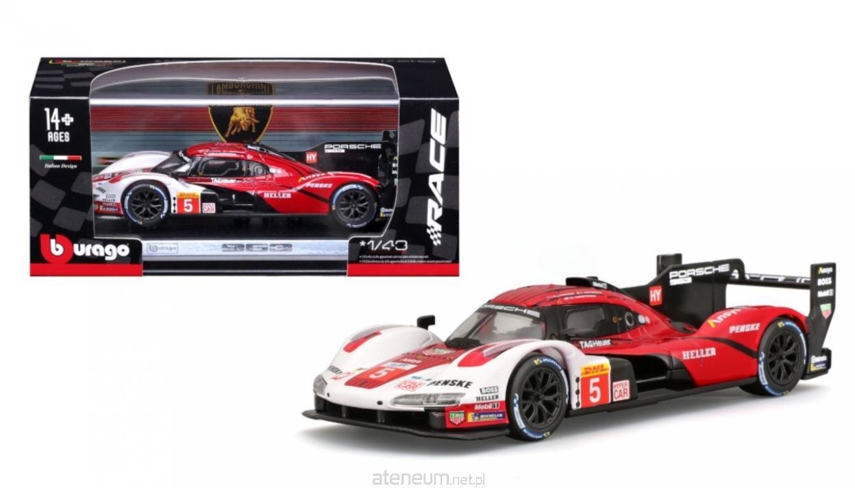 Porsche 963 #5 Penske Motorsport oryginalny produkt marki Bburago, oficjalny, licencjonowany wzór pojazdu, metalowy model z plastikowymi elementami, perfekcyjne odwzorowanie szczegółów. Model umieszczony na plastikowej podkładce oraz zamknięty w ochronnej gablotce. Wymiary opakowania: szerokość 14,5cm, głębokość 7cm, wysokość 6,5cm. Porsche 963 to nowoczesny samochód wyścigowy, stworzony z myślą o rywalizacji w klasie Hypercar oraz GTP w FIA World Endurance Championship i IMSA SportsCar Championship. Zbudowany przez Porsche we współpracy z Multimatic, 963 czerpie inspirację z legendarnego Porsche 956 i 962, które triumfowały na torach w latach 80. Debiut pojazdu miał miejsce na Goodwood Festival of Speed w 2022 roku, gdzie zaprezentowano go w klasycznych barwach Porsche:czerwonej, białej i czarnej.