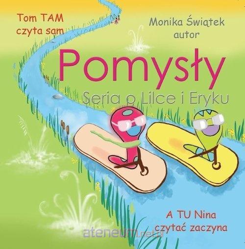 Pomysły, to czwarta książeczka z serii O Lilce i Eryku, z tekstem do wczesnej nauki czytania metodą globalną, przeznaczona dla dzieci mieszkających zarówno w kraju, jak i za granicą. Lilka i Eryk znajdują znakomite zastosowanie dla przedmiotów codziennego użytku, które, gdyby nie zostały ponownie wykorzystane, powiększyłyby problem globalnego zaśmiecenia. Ta radosna kreatywność niech będzie dla nas inspiracją. Weźmy i my udział w ratowaniu świata! Lilka i Eryk to seria do samodzielnego czytania dla dzieci w wieku 38 lat. To śmieszne historyjki opatrzone krótkim i bardzo elementarnym tekstem, którego najważniejszą cechą jest to, że nie posiada znaków diakrytycznych i jest pisany dużymi, wyrazistymi literami. Czytanie tak skonstruowanego tekstu jest niezmiernie proste, albowiem te same słowa pojawiają się na kolejnych stronach, a obrazek ilustruje to, o czym traktuje treść podpisów. Nieskomplikowany tekst pod ilustracją pozwala dziecku uwierzyć w to, że SAMO przeczyta, i że czytanie wcale nie jest takie trudne. Seria o Lilce i Eryku, to propozycja zarówno dla dzieci mieszkających w Polsce, jak i za granicą. Tom TAM czyta sam, a TU Nina czytać zaczyna dopiski w rogach okładki odnoszą się do adresatów serii. Dla dzieci mieszkających w Polsce, to doskonała lektura wspomagająca pierwszy etap codziennej nauki czytania. Dla dzieci mieszkających poza granicami kraju z oczywistych względów niemających na co dzień styczności z polską całodzienną edukacją to znakomita szkoła czytania w języku rodziców, dla których pytanie: Jak mam za granicą nauczyć dziecko czytać po polsku? znajduje ostatecznie odpowiedź.