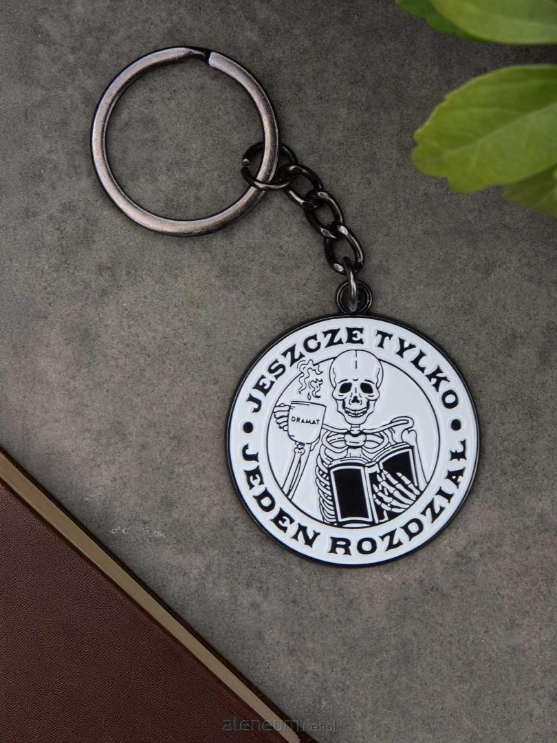 Brelok JESZCZE TYLKO JEDEN ROZDZIAŁ to drobny prezent dla książkoholika. Okrągły, metalowy i odporny. Przypomina, że czytanie nie ma końca. Oryginalny prezent dla fana horrorów, dla fanki klasyki grozy i dla tych, którzy zawsze się spóźniają, bo mieli "jeszcze jeden rozdział". Brelok pasuje do kluczy, torby i literackiego stylu życia.