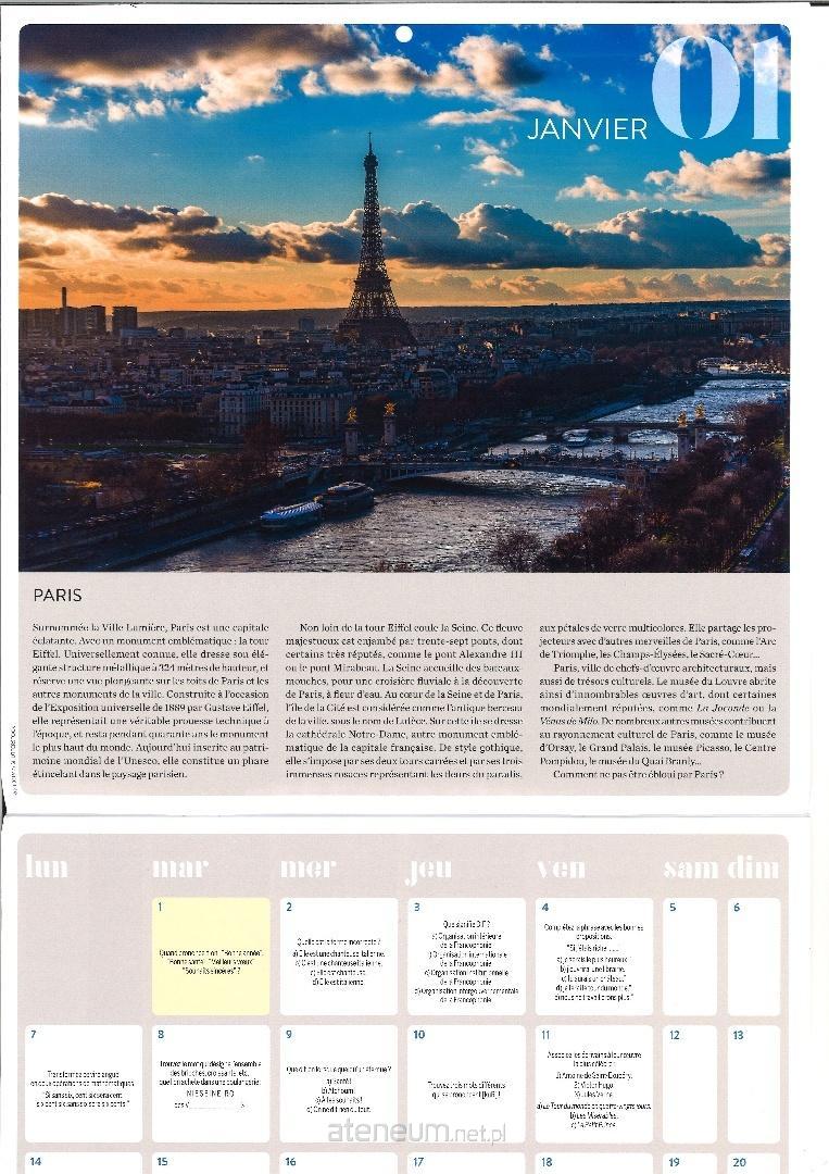 Kalendarz ilustrowany malowniczymi pejzażami Francji przygotowany przez wydawnictwo PUG to doskonała pomoc przy nauce języka francuskiego, gotowy do powieszenia w domu lub w klasie.