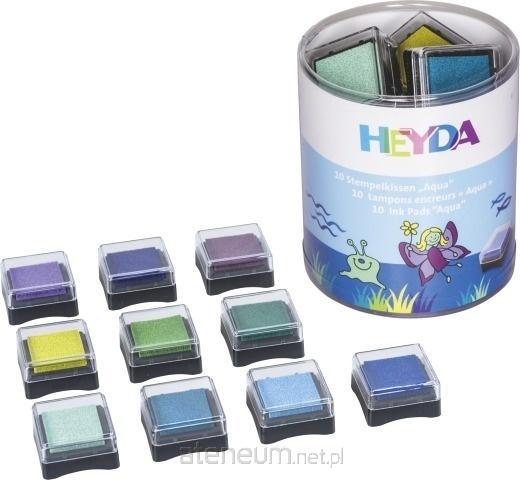 Zestaw 10 poduszek do stempli, każda nasączona tuszem w innym kolorze. Wielkość podeszki to 3 x 3 cm. Tusz na bazie oleju nadaje się na papier, karton, bibułę itp.