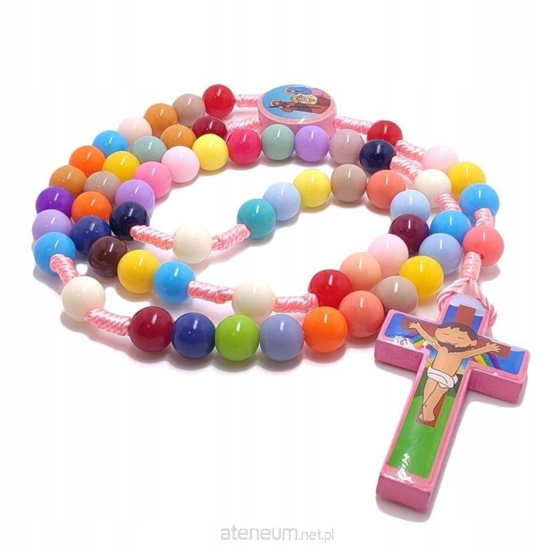 Uroczy, różowy różaniec dziecięcy, idealny do wprowadzenia najmłodszych w świat modlitwy różańcowej. Kolorowe koraliki i łącznik przedstawiający sceny z Ewangelii przyciągają uwagę i zachęcają do modlitwy. Wykonany z bezpiecznego plastiku i trwałego sznurka, różaniec jest lekki i wygodny dla dziecięcych rączek. Idealny jako prezent na Chrzest, Pierwszą Komunię Świętą lub inną okazję.
