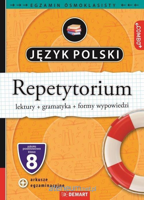 Repetytorium z języka polskiego służy przygotowaniu ósmoklasisty do obowiązkowego egzaminu na zakończenie szkoły podstawowej . Część powtórzeniową podzielono na zagadnienia gramatyczne (Gramatyka 28 tematów) i pozostałą nazwaną Lektury, choć obejmującą znacznie szerszy zakres tematyczny: omówienie lektur obowiązkowych począwszy od klasy IV do VIII , informacje o twórcach, formy wypowiedzi (67 tematów). Na rynku brakuje omówień obowiązkowych lektur w klasach młodszych, a one też są potrzebne do testów egzaminacyjnych. Na końcu znajdują się arkusze egzaminacyjne z ostatnich lat 2024 i 2025 - czyste do wypełnienia przez ucznia oraz uzupełnione. Te z odpowiedziami zawierają: punktację, komentarze i informacje, jak nie stracić punktów, a przy wypracowaniach ocenionych na maksymalną notę (zawsze są teksty do obydwu tematów), jest bardzo szczegółowe oznaczenie ich konstrukcji, argumentacji, użytych przykładów pochodzących z lektur i innych elementów przydatnych zdającemu egzamin uczniowi.