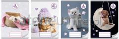 Wnętrze: papier z niebieską liniaturą i zielonym marginesem