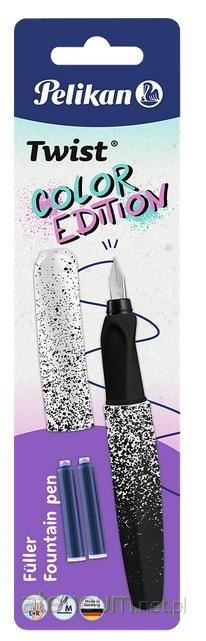 Pelikan Twist to pióro wieczne, które przyciąga uwagę od pierwszego spojrzenia jego charakterystyczna, skręcona forma łączy nowoczesny styl z ergonomiczną wygodą użytkowania. Doskonale dopasowuje się do dłoni, dzięki czemu jest świetnym wyborem zarówno dla dzieci, jak i młodzieży. Korpus pióra wykonano w ponad 78% z tworzyw pochodzących z recyklingu, a jego unikalne, dynamiczne wykończenie inspirowane efektem malowania sprayem nadaje mu oryginalny, artystyczny charakter. Wyposażone w stalówkę ze stali nierdzewnej z irydowym ziarnem, gwarantuje płynne i precyzyjne pisanie, a obsługa na naboje atramentowe zapewnia wygodę i czystość w codziennym użytkowaniu.