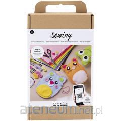 Zawartość: Krosno (niezmontowane), klej, 6 m nici osnowy, grzebień, igła do włóczki oraz włóczka w różnych kolorach i o różnych cechach - łącznie 30 m włóczki.