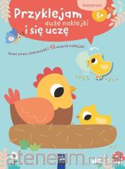 Duże naklejki wielokrotnego użytku urozmaicą zabawę. Naklejka w dolnym rogu na każdej stronie przedstawia obiekt, na którym maluszek może się wzorować, kolorując rysunek.