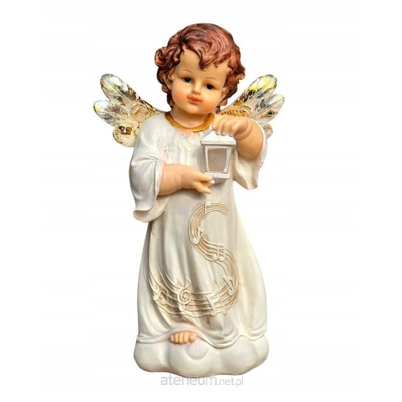 Odkryj subtelne piękno i duchową harmonię z tą wyjątkową figurką aniołka. Stojący na chmurce, aniołek trzyma w dłoniach latarnię, która dzięki zasilaniu bateryjnemu rozświetla otoczenie ciepłym,delikatnym blaskiem LED. Jego pozłacane skrzydełka lśnią w świetle, a długa,beżowa suknia zdobiona nutkami dodaje mu muzycznego charakteru. Urocza twarz aniołka, z delikatnymi rumieńcami i lekkim uśmiechem, emanuje spokojem i radością. Całość utrzymana jest w stonowanej, beżowej tonacji, co nadaje figurce wyjątkowej elegancji. Wysokość figurki to imponujące 30 cm, co czyni ją wyrazistym elementem dekoracyjnym.