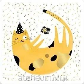 Karnet jednostronny Urodzinowy kot, złocony, koperta sprzedawana osobno