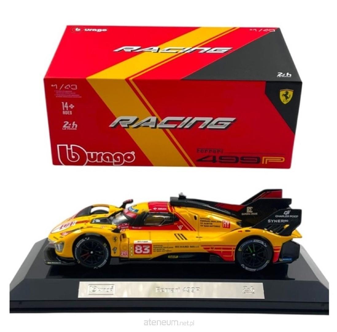 Ferrari 499P #83 KUBICA LMH FIA 24h Le Mans 2024 1:43 Bburago 18-36317\nFerrari 499P #83 - Robert Kubica, Israel Robert Shwartzman, China Yifei Ye\noryginalny produkt marki Bburago,\noficjalny, licencjonowany wzór pojazdu,\nmetalowy model z plastikowymi elementami,\nperfekcyjne odwzorowanie szczegółów.\nModel zamknięty w ochronnej gablotce, umieszczony na plastikowej podstawce z nazwą pojazdu.\n\nRuchome elementy: brak.\n\nDługość samochodu: ok. 10,5cm.\n\nWymiary opakowania: 15 x 8 x 7cm.\n\n\nFerrari 499P z numerem 83, prowadzone przez AF Corse w sezonie FIA WEC 2024, to prywatny hipersamochód, który zadebiutował w klasie Hypercar.\n\nZa kierownicą Robert Kubica, Robert Shwartzman i Yifei Ye odnieśli sukcesy, wygrywając w Imola i Austin (Lone Star Le Mans), a także zdobywając dwa trofea w Pucharze FIA dla zespołów Hypercar.\n\nSamochód w charakterystycznej, odwróconej kolorystyce Giallo Modena z czerwonymi akcentami, inspirowanej zwycięską 499P z Le Mans 2023, prowadził przez 83 okrążenia w 24-godzinnym wyścigu Le Mans 2024, pokazując konkurencyjność wobec fabrycznych ekip.\n\nSezon zakończył z cennym doświadczeniem i ambicjami na kolejne triumfy.