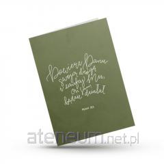 Kartka z cytatem z Księgi Powtórzonego Prawa 31,8 przypomina o Bożej obecności w każdym kroku życia. Nowoczesny, graficzny projekt łączy pastelowe barwy z głębokim przesłaniem wiary i nadziei.