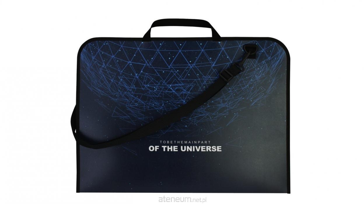 Teczka wykonana ze sztywnego tworzywa PP z ozdobnym nadrukiem oraz obszyciem w kotrastowym kolorze. Wymiary teczki 38x52 cm umożliwiają przechowywanie prac plastycznych w formacie A3 z zapasem miejsca. Wyposażona w zamknięcie na suwak oraz materiałowe rączki i odpinany pasek na ramię. Dodatkowa kieszeń wewnątrz ułatwia utrzymanie porządku przechowywanych prac. Grzbiet o szerokości 3 cm pozwala na przechowywania w teczce przyborów plastycznych.