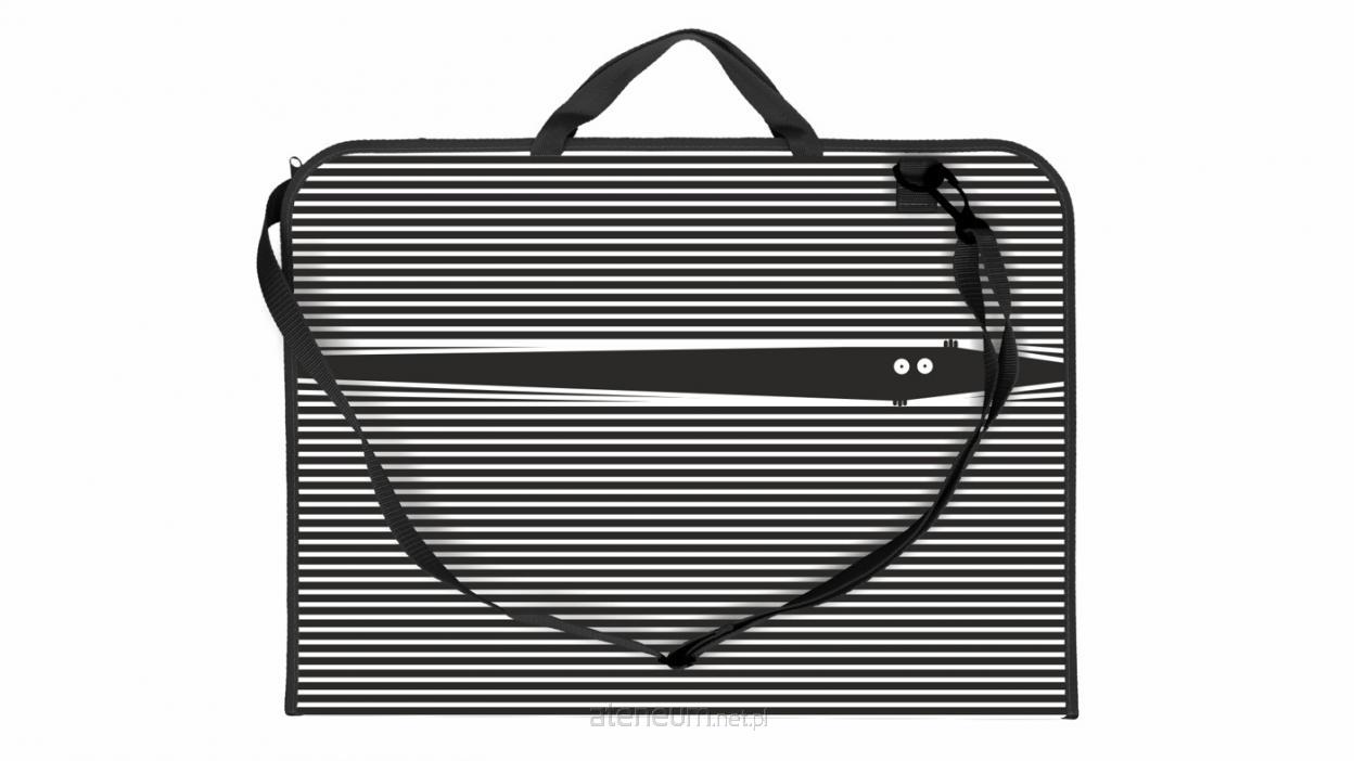 Teczka wykonana ze sztywnego tworzywa PP z ozdobnym nadrukiem oraz obszyciem w kotrastowym kolorze. Wymiary teczki 38x52 cm umożliwiają przechowywanie prac plastycznych w formacie A3 z zapasem miejsca. Wyposażona w zamknięcie na suwak oraz materiałowe rączki i odpinany pasek na ramię. Dodatkowa kieszeń wewnątrz ułatwia utrzymanie porządku przechowywanych prac. Grzbiet o szerokości 3 cm pozwala na przechowywania w teczce przyborów plastycznych.