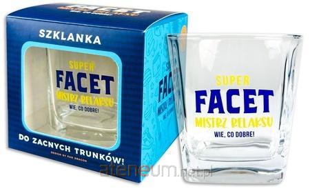 Szklanka dla Super Faceta zapakowana w estetyczne, kolorowe pudełko.