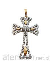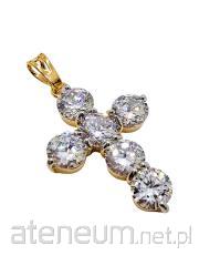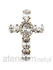 Zdobienie zostało wykonane z niezwykłą precyzją: trzy górne ramiona krzyża posiadają po trzy starannie osadzone cyrkonie, natomiast dolna, wydłużona część ramienia została wysadzona aż jedenastoma kamieniami. Taki układ tworzy harmonijną i świetlistą linię, która podkreśla pionową formę krzyża. Całość wykończona jest w szlachetnym odcieniu złota, co w połączeniu z blaskiem kamieni tworzy niezwykle prestiżowy efekt.