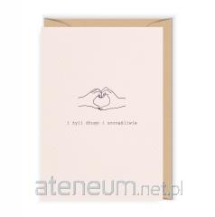 Otwierana kartka, pusta w środku, wykonana na papierze (z certyfikatem EFC) z wyraźnie widoczną fakturą. W zestawie ekologiczna koperta.