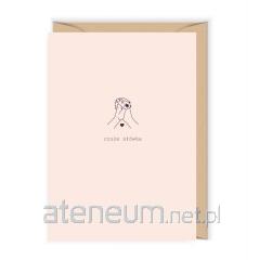 Otwierana kartka, pusta w środku, wykonana na papierze (z certyfikatem EFC) z wyraźnie widoczną fakturą. W zestawie ekologiczna koperta.