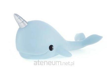 Lampka nocna narwal niebieski ze srebrnym rogiem, idealna do pokoju dziecięcego.