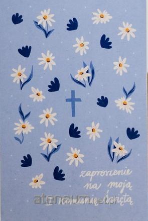 Minimalistyczne i delikatne zaproszenie na Komunię Świętą do własnoręcznego uzupełnienia. Karta zaproszenia ma wymiar 105x148 cm po złożeniu. Drukowana jest na papierze o gramaturze 300. Zaproszenie do własnoręcznego uzupełnienia. W zestawie ekologiczna koperta C6.