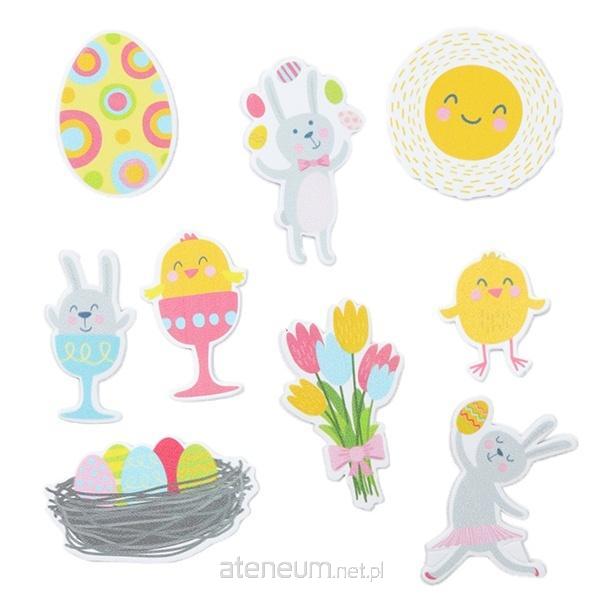 Naklejki piankowe zajączki, kurczaczki, pisanki, bukiet tulipanów, słońce 9 wzorów 36szt.