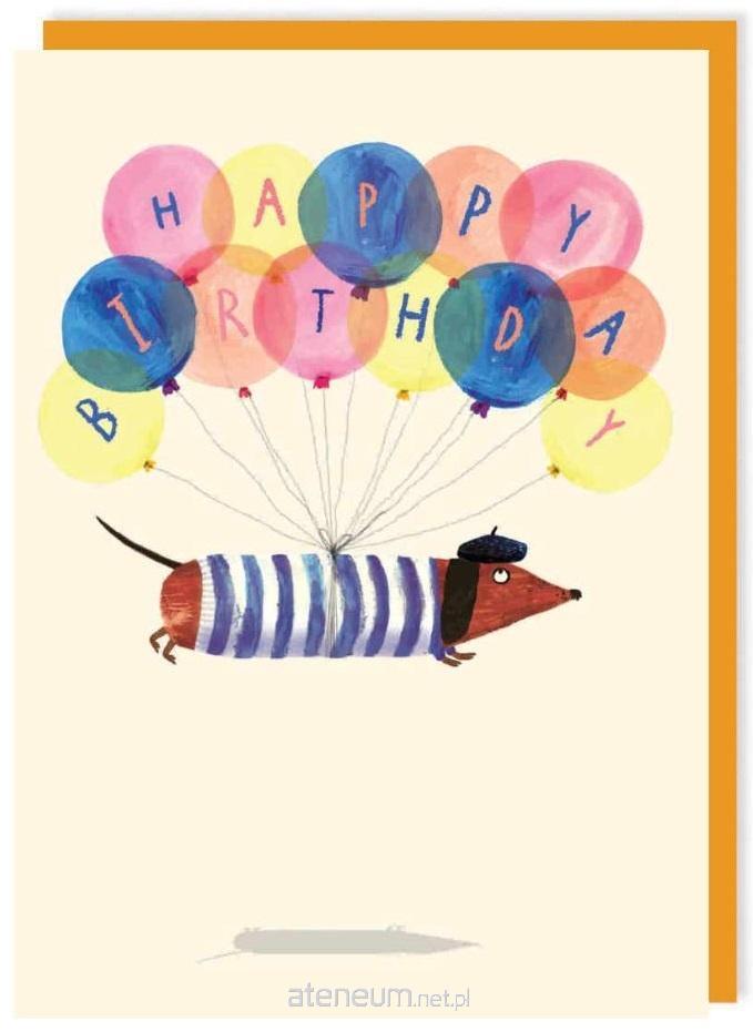 Karnet kwadrat 007 Urodziny Jamnik z balonami