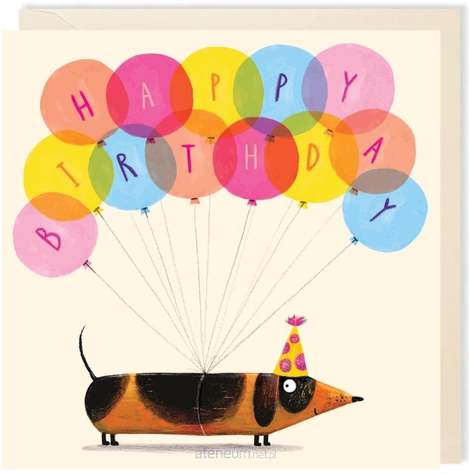 Karnet kwadrat 055 Urodziny Latający jamnik