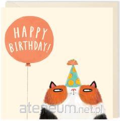 Karnet kwadrat 008 Urodziny Kot z balonem