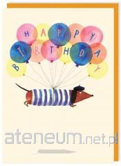 Karnet 267 Urodziny Latający jamnik z balonami