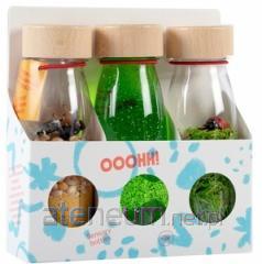 Butelki od Petit Boum bawią, uczą i stymulują wyobraźnię! Obserwowanie zachwycającego świata barw oraz przepływającego i połyskującego brokatu wprawi dziecko w błogi stan relaksu i spokoju. Skupienie uwagi na pływających elementach pomoże w nauce koncentracji i uważności.