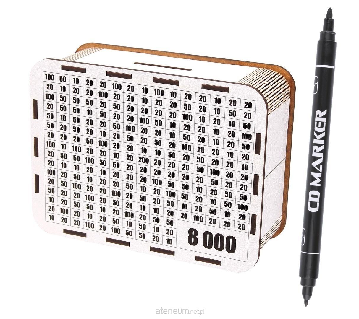 Na powierzchni skarbonki znajduje się tabelka, w której można wykreślać kolejne wartości nominałów banknotów lub bilonu w miarę dodawania gotówki. Po wykreśleniu wszystkich pól skarbonka będzie zawierać 8000zł Posiada specjalny otwór na górze do wrzucania monet i banknotów.