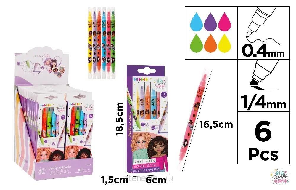 Zakreślacz BDGirls dwustronny 0.4mm 6 kolorów
