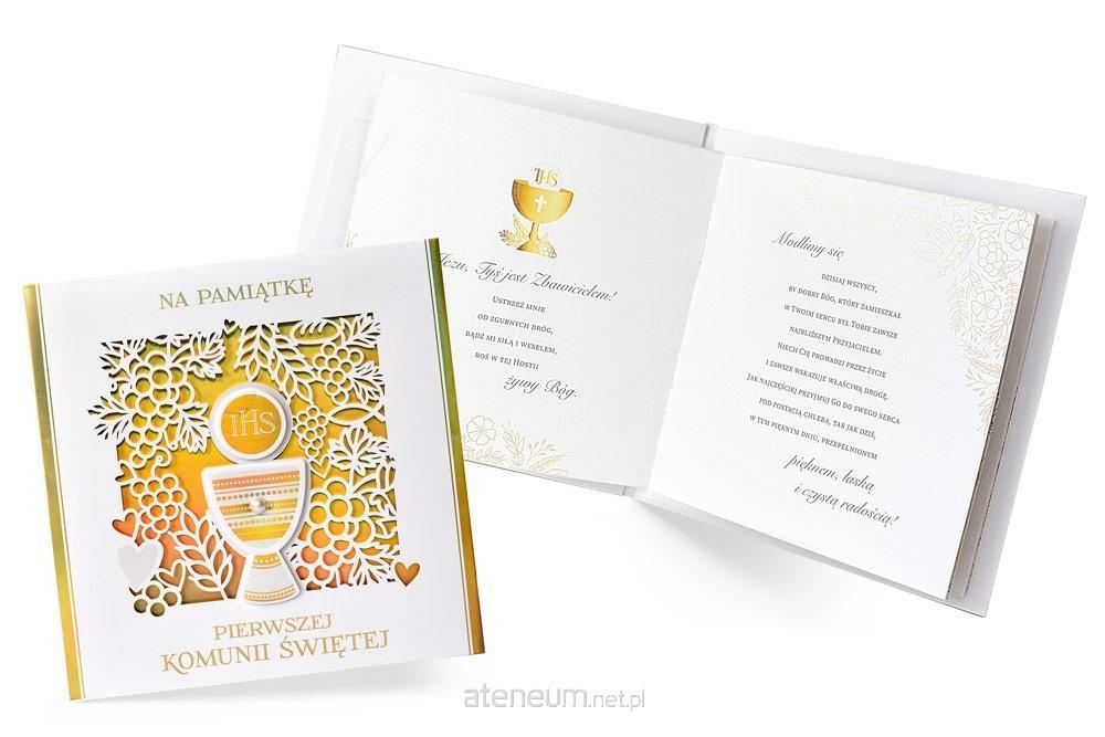 Książeczki PMB Q to produkt wyjątkowy - pięknie wydany, elegancki, zdobiony złotą oraz perłową folią, z kolorowym wnętrzem z pięknymi grafikami i cytatami oraz życzeniami i miejscem na osobistą dedykację. Na wewnętrznej stronie okładki wklejona jest specjalna, nieduża koperta, w której można przekazać kartę podarunkową lub banknot. Książeczka PMB Q Kukartka to idealny prezent na wyjątkową okazję, jaką niewątpliwie jest Pierwsza Komunia Święta. Cechy szczególne: Format: 20 x 20 cm zdobienie: złota oraz perłowa folia wnętrze: kolorowe, z grafikami, cytaty, miejsce na dedykację i wpisanie miejsca/godziny uroczystości, gratis: koperta na drobny upominek wewnątrz, okazja: komunia, Pierwsza Komunia Święta.