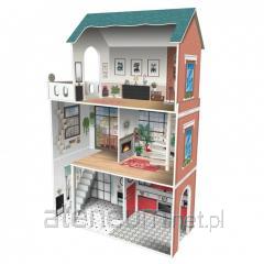 Rezydencja Marzeń w rozmiarze XL - 4 piętra pełne przygód! Odkryj niezwykły, drewniany dom dla lalek, który zachwyca nie tylko skalą, ale i unikalnym designem. Ta imponująca konstrukcja o wysokości ponad 130 cm oferuje cztery kondygnacje kreatywnej zabawy. Wnętrza ozdobiono szczegółowymi nadrukami, które nadają każdemu pomieszczeniu niepowtarzalny charakter. W zestawie znajdziesz aż 17 stylowych akcesoriów i mebelków, które pozwolą dziecku na dowolną aranżację przestrzeni. To jakość, którą widać w każdym detalu. Wymiary domku: 130,3 x 36 x 134,5 cm.