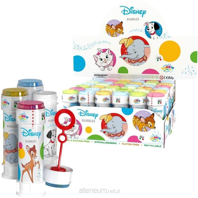 bańki mydlane z postaciami bajek Disney'a, na każdej nakrętce znajduje się gra - labirynt z piłeczką, ilość płynu w opakowaniu: 60 ml, wym. bańki: 11,5 x 3,5 cm., 3+