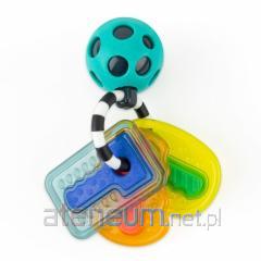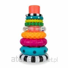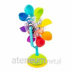 Niezwykły kołowrotek, kiedy jest poruszany przez malucha, odwdzięcza się kolorowymi światełkami, podczas gdy koraliki kaskadowo wędrują po obręczy wewnątrz zabawki. Miękkie, kolorowe zewnętrzne wypustki tworzą efekt tęczy. Ta zabawka 2w1, idealna zarówno do zabawy na podłodze, jak i na stoliku czy tacce, bezpiecznie mocowana za pomocą przyssawki.