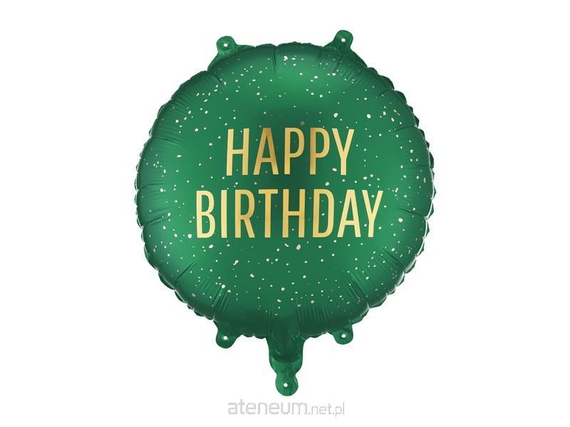 Balon foliowy pastylka Happy Birthday, w kolorze ciemnozielonym ze złotymi drobinkami i napisem. Wymiary przed napompowaniem ok. 45 x 45 cm (18 x 18\\'\\'), wymiary po napompowaniu ok. 35 x 35 cm (14 x 14\\'\\'). Do napompowania powietrzem i helem. Zestaw zawiera słomkę.