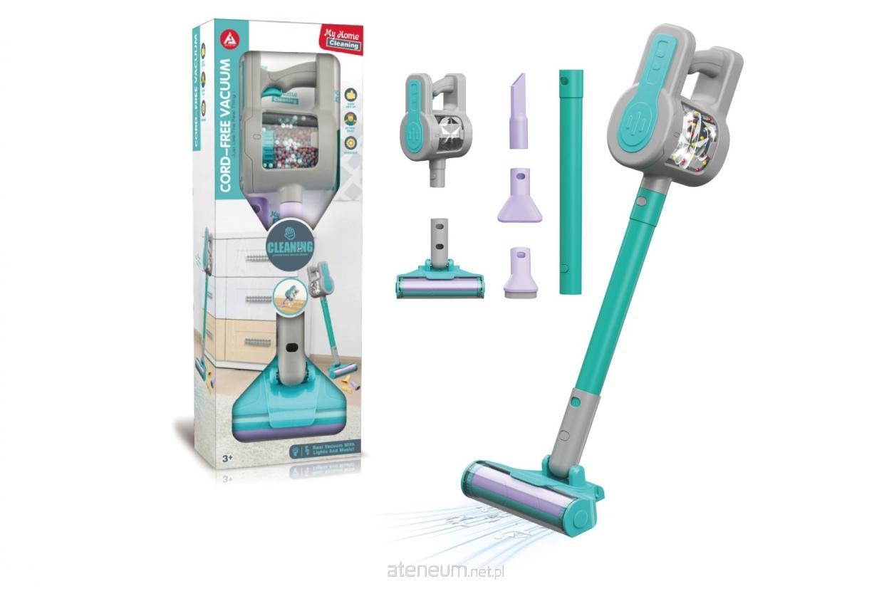 W zestawie: odkurzacz, 4 wymienne końcówki, funkcje: światło, dźwięk odkurzania, muzyka, wys. zabawki 45 cm, wym. opak. 53,5 x 19,5 x 9,7 cm, 3+