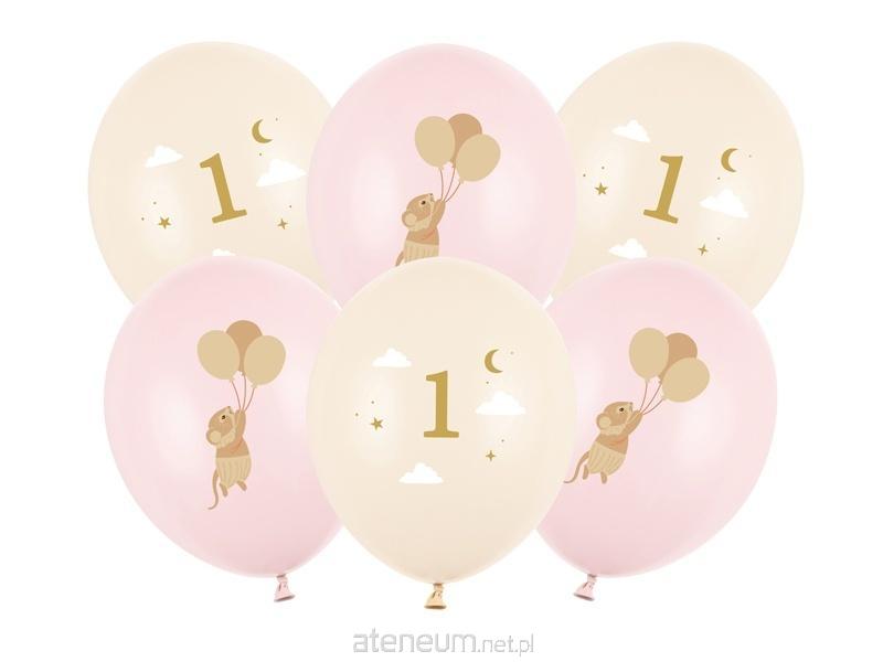 Balony Strong Myszki z cyferką 1. Zestaw zawiera 6 balonów z dwustronnym nadrukiem, w dwóch kolorach: 3 x Pastel Pale Pink i 3 x Pastel Blush. Średnica ok. 30 cm.(1 op. / 6 szt.)