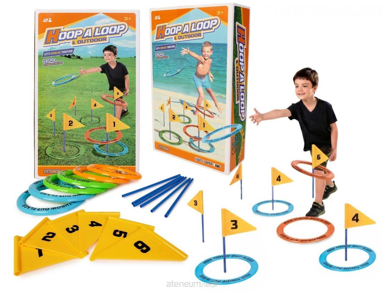 W zestawie: 6 obręczy średnica: 12 cm, 6 słupków do celowania, 6 plastikowych flag, funkcje: celowanie obręczami w słupki umieszczone w podłożu, gra może mieć charakter zarówno solo jak i można grać w kilku graczy, wym. opakowania: 14,5 x 24,5 x 6 cm, 3+