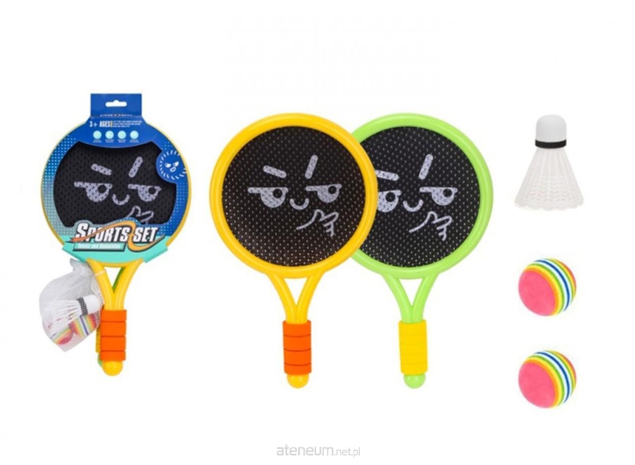 W zestawie: 2 rakietki wym. 39,5 x 23,5 cm, lotka, dwie piłeczki śr. 4,2 cm, wym. opakowania: 43,5 x 6,5 x 23 cm, 3+