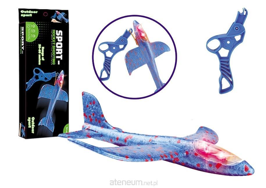 W zestawie: samolot - szybowiec dł.: 21,5 cm, wyrzutnia; funkcje: wyrzutnia umożliwia wystrzeliwanie samolotu, efekty świetlne w samolocie; wym. opak.: 27,7 x 10 x 4 cm; baterie: 3 x AG13 (samolot) dołączone; 3+