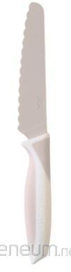 Ostrze wykonane ze stali nierdzewnej ma zaokrąglone, ząbkowane krawędzie - bez ostrych elementów. I to ze wszystkich stron: górnej, dolnej, bocznych i czubka. Cokolwiek się wydarzy przy stole, palce są bezpieczne. Ostrze działa w ruchu piłującym lub siekającym, utrzymując stały kontakt z jedzeniem. Dzięki temu krojenie jest skuteczne i płynne, a jednocześnie bezpieczne dla małych dłoni.