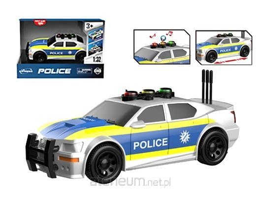 W zestawie: auto dł.: 15,5 cm; funkcje: naciśnięcie przycisków aktywuje efekty świetlne i dźwiękowe; skala: 1:32; wym. opak.: 19 x 12,5 x 8,5 cm; baterie: 3 x AG13 dołączone; 3+