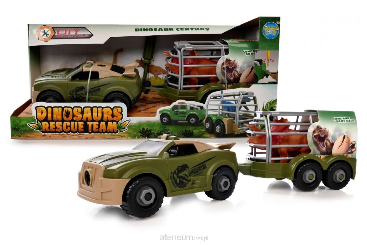 W zestawie: auto, przyczepa z klatką, figurka dinozaura; funkcje: napęd free wheel; wym. opak.: 36 x 11 x 17 cm; 3+
